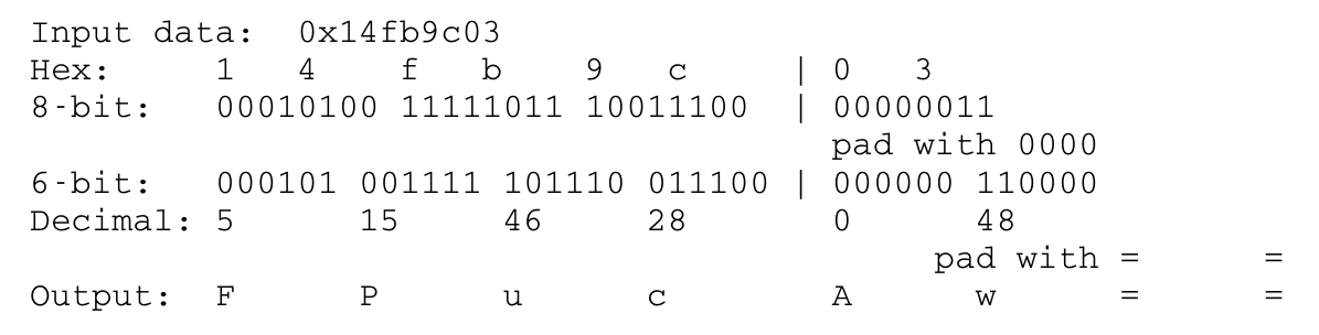 Figure 2: Example of base64 encoding (no padding used)