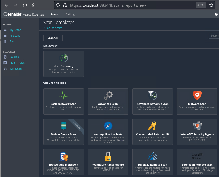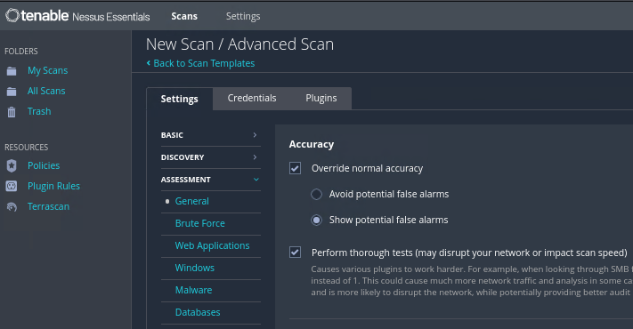 Note that there are various scanning profiles available, and depending on your selection Nessus will check the target(s) for different types of security issues.