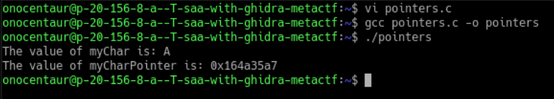 Note: Ok, so what is going on here? This is where C syntax differs from other high-level languages you may be familiar with. Whenever you see a variable being declared with an asterisk (*) before its name, the variable is a pointer. So, in the example above, read: declare a variable called myCharPointer, of type pointer (to a char).
