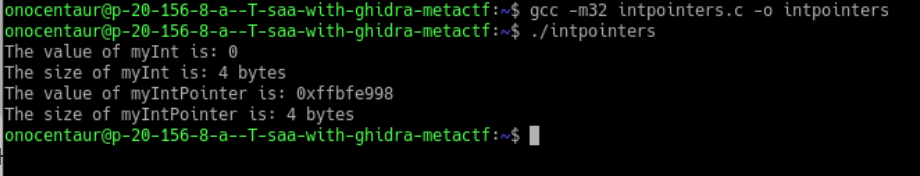 (don’t forget to compile your code as a 32-bit program by using the -m32 option as shown above)