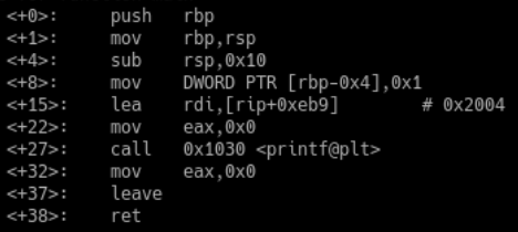 Assembly language is a human-readable way of representing machine code. It uses mnemonics to represent instructions that the CPU executes, such as “push”, “mov” and “call”. Look at the assembly code below, is it not slightly more human-friendly? Don’t worry about trying to understand what it does for now. By the end of this module, you will be able to follow assembly instructions like these to work out what the code is doing.