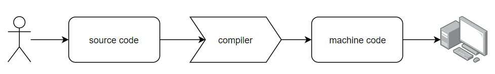 The figure above shows the typical process of compiling source code written in a high-level language into machine code that the computer can execute.