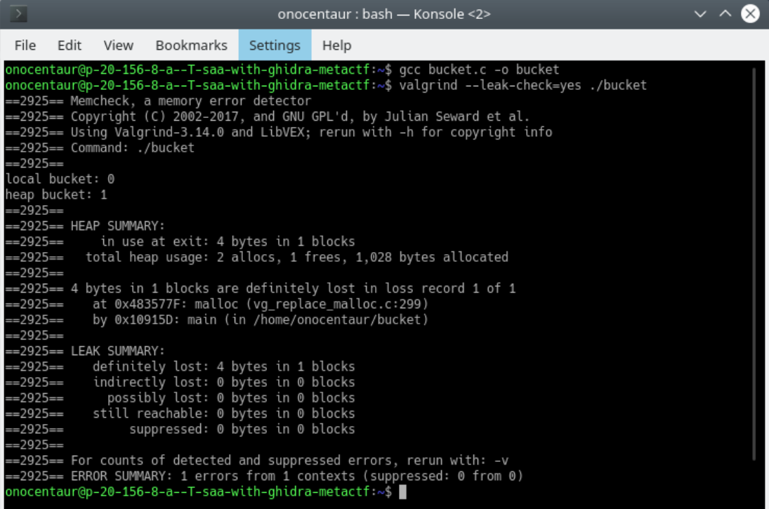 Note: Note the leak summary toward the bottom and the 4 bytes lost.