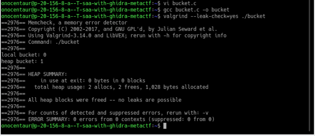 ==action: Now add the call to free(), re-compile and run valgrind again.==