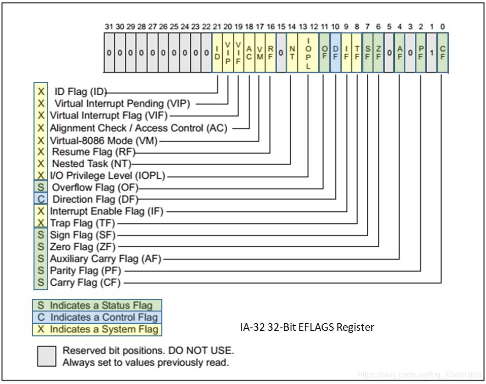 EFLAGS register bit layout https://www.programmersought.com/article/7622514127/