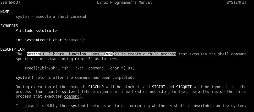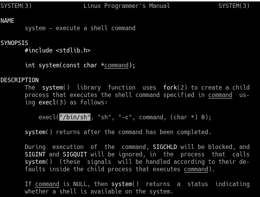 Earlier in the lab we looked in the manual page for the system function and saw that it was actually just a wrapper for another function execl().