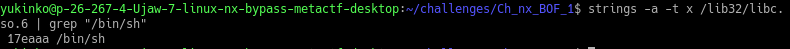 strings -a -t x /lib32/libc.so.6 | grep "/bin/sh"