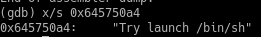 (gdb) x/s 0x645750a4 + 11
