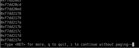 (gdb) find ==edit:Libc-Start-Addr==, ==edit:Libc-End-Addr==,0x00000000
