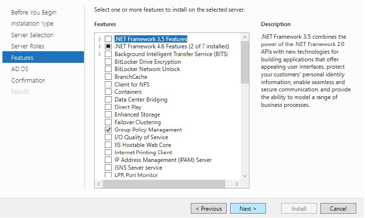 No additional features need to be installed. ==action: Click “Next” to continue.==