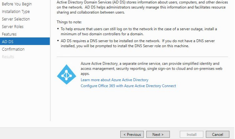 Once Active Directory Domain Services has been checked, ==action: click “Next”.==