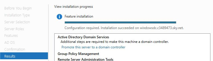Once the installation completes, ==action: click “Promote this server to a domain controller”==