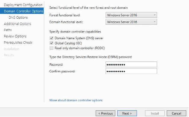 ==action: Set a strong password (and make a note of it) for the Directory Services Restore Mode.== The password will be used to boot into recovery mode.