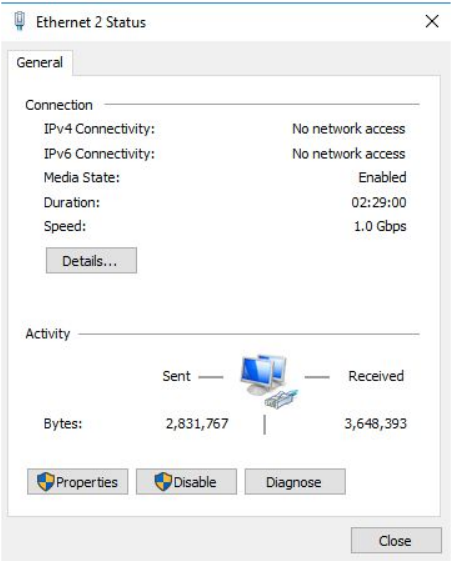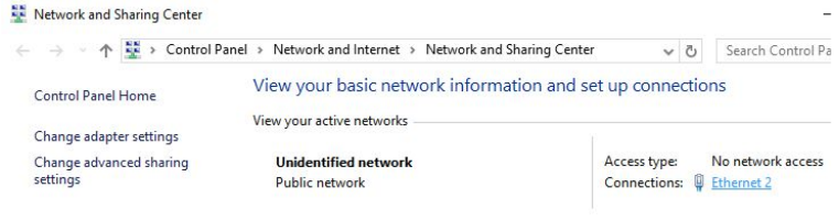 ==action: Click on the active connection==, in our case ‘Ethernet 2’ as underlined.