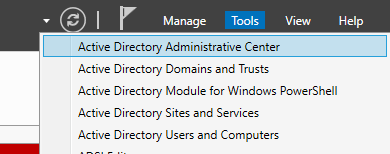Add a test user to the domain. ==action: Start by launching the Server Manager > Tools > Active Directory Administrative Centre.==