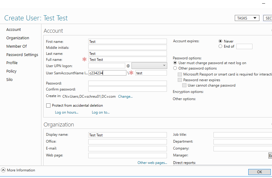 ==action: Create a test user by entering a name and username, and Click OK.==