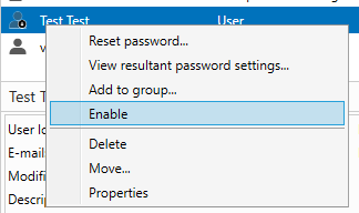 ==action: Then right click the user to reset the password, and then enable the account.==