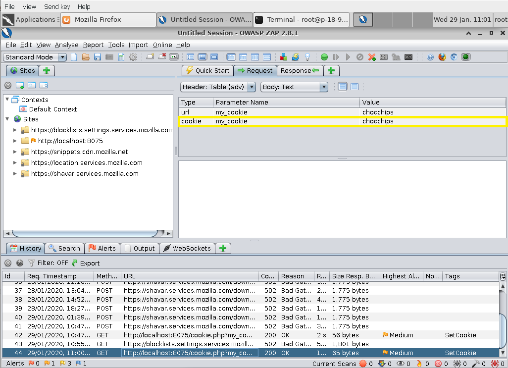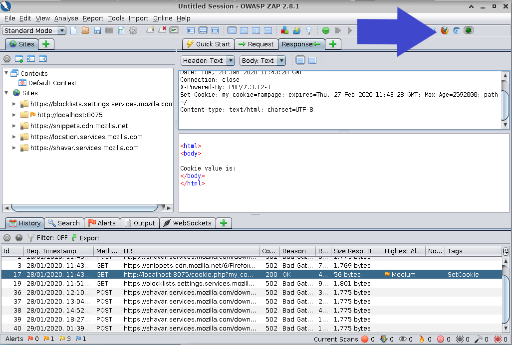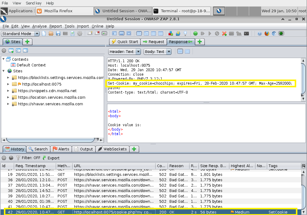 We are going to write a very simple PHP page that sets a session cookie. We are then going to use Zap to intercept the communication between the client and the server so we can understand the exchanges that happen.