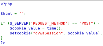 Note: The code above sets the session to the current time (in seconds). ==hint: How could a malicious attacker use this information to guess a user’s session id?==