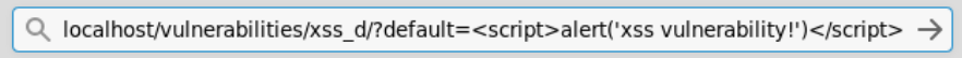 <script type='text/javascript'>alert('xss vulnerability!');</script> -